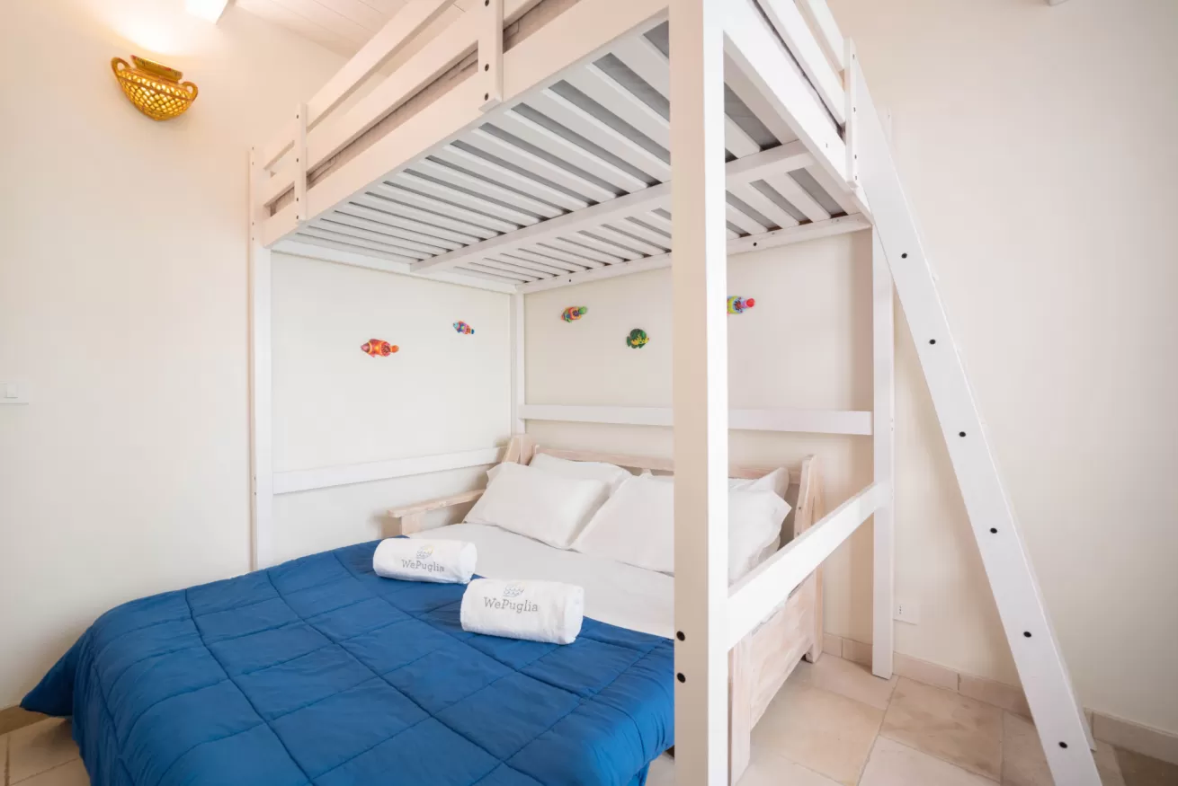 Dimore Sallustio are 2 independent houses, located in the heart of the historic center of Monopoli, about 50m from the wonderful city beach of Cala Porta Vecchia. Casa Grande is a multi-level accommodation, and consists of a bedroom with a French double bed on the mezzanine and a double sofa bed, and a bathroom with shower on the first floor. On the second floor there is a kitchen and a double bedroom, while on the third floor there is a private terrace with gazebo and kitchenette. Among the strengths of the accommodation we have an equipped terrace for the exclusive use of guests, the fact of being in a very central position, having a wonderful city beach within walking distance. The accommodation can accommodate up to 6 people and it is equipped with Wi-Fi internet and air conditioning.