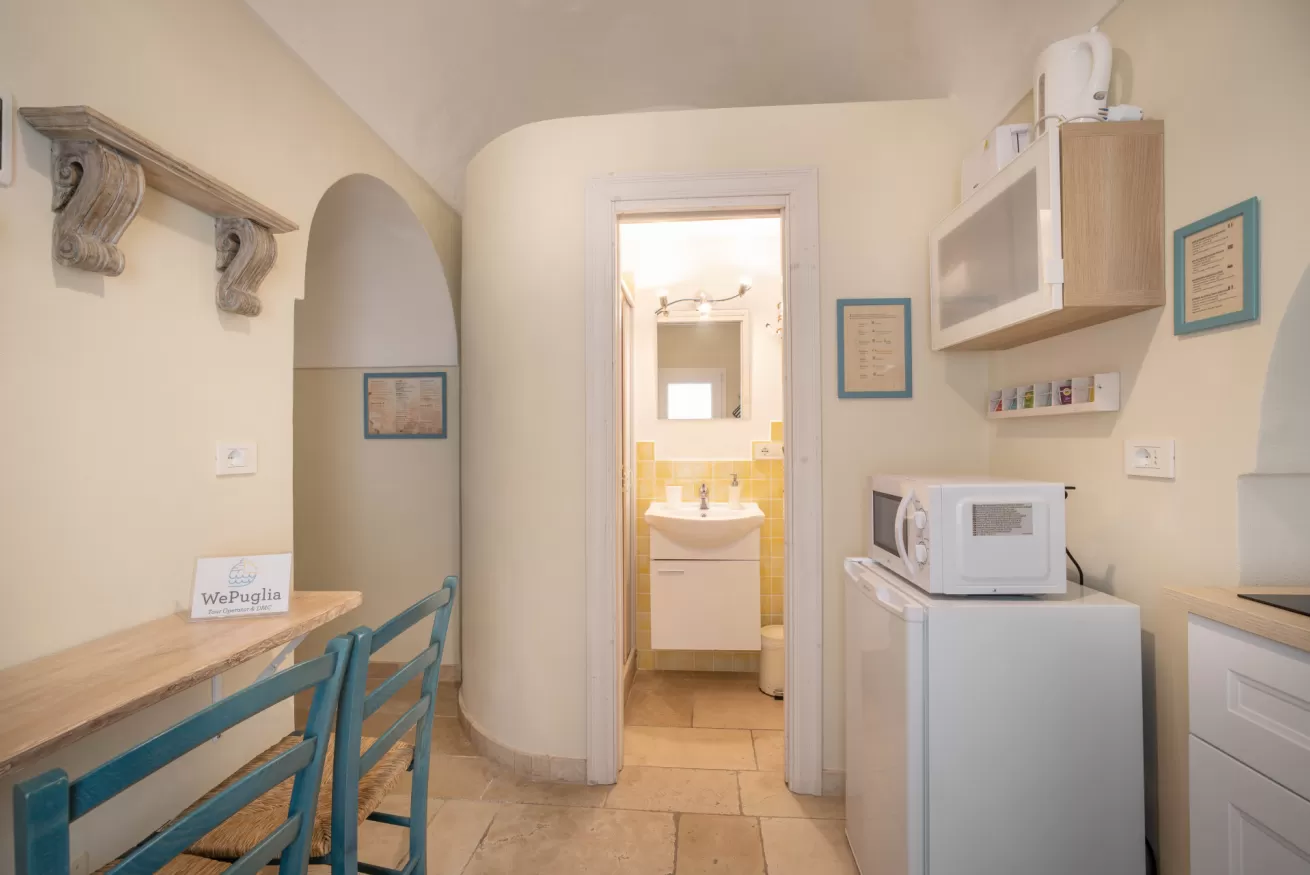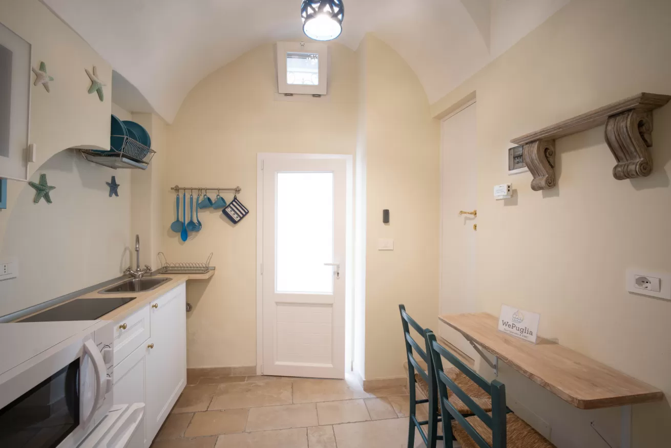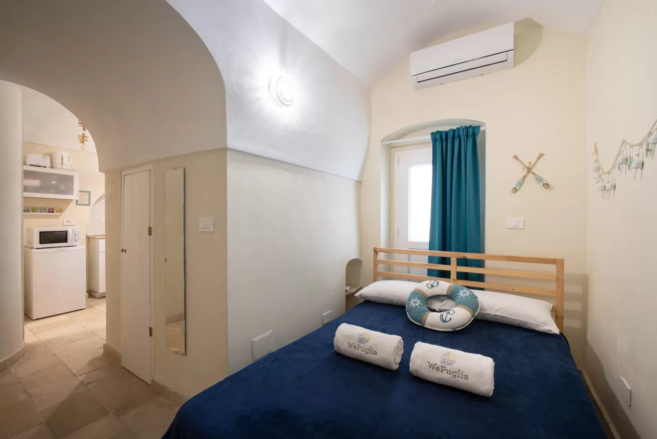 Piccola Casa is a traditional ground floor house in the historic center of Monopoli. The accommodation consists of an entrance hall with a kitchen equipped with a sink, 2-burner induction plates, microwave oven, fridge and a small table. There is also a bathroom with shower and a double bedroom with air conditioning.