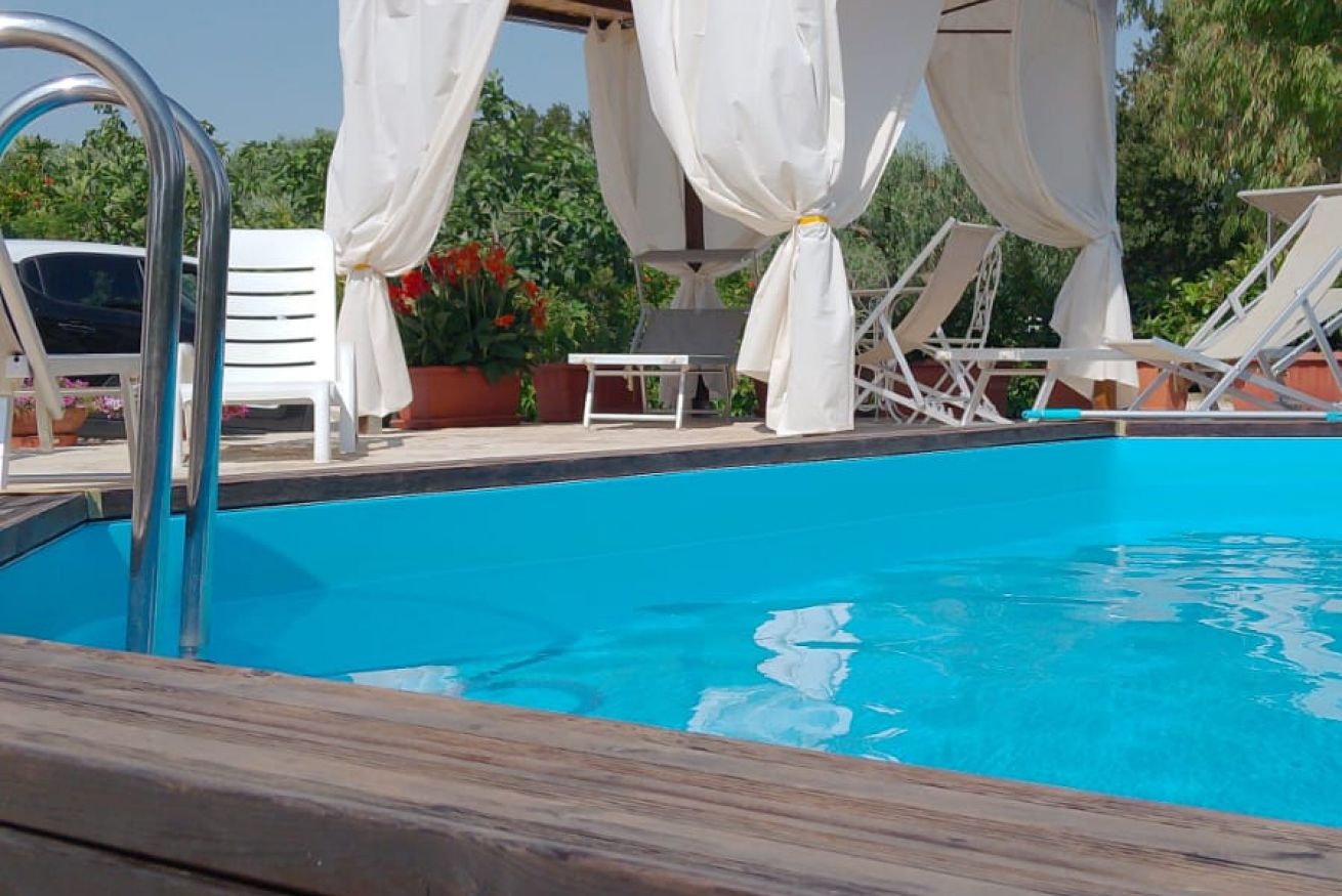 L’agriturismo è dotato di piscina (6m x 4m x 1,40m) aperta dal 28 Maggio al 30 Settembre, zona solarium con lettini prendisole e spazi esterni comuni di grande fascino. Tra questi, spiccano due ampi pergolati: uno attrezzato con tavolo e sedute per momenti di relax e l’altro, situato su un’antica aia in pietra, adibito a soggiorno esterno. All’interno della struttura è presente una cucina comune attrezzata con piano a induzione, forno, microonde e frigorifero a disposizione degli ospiti.
