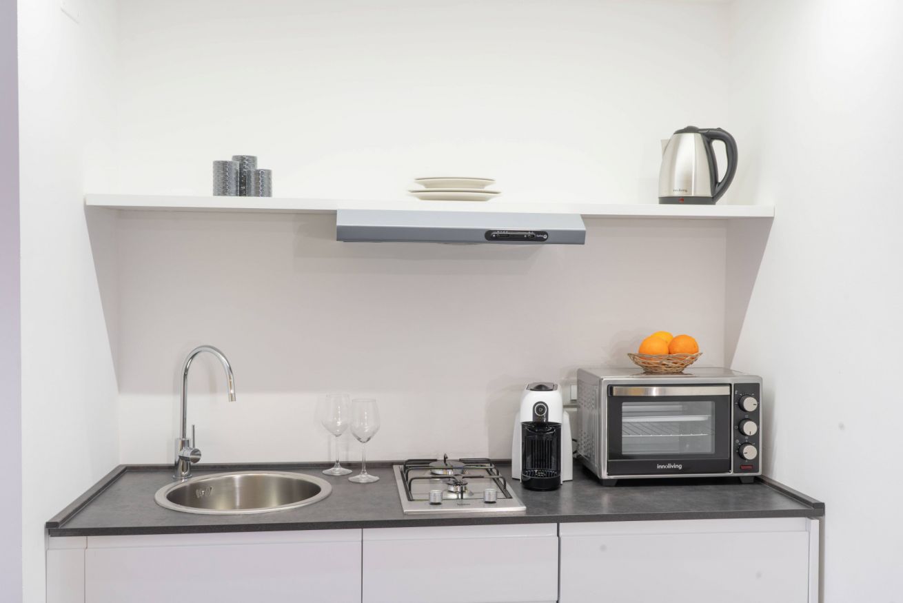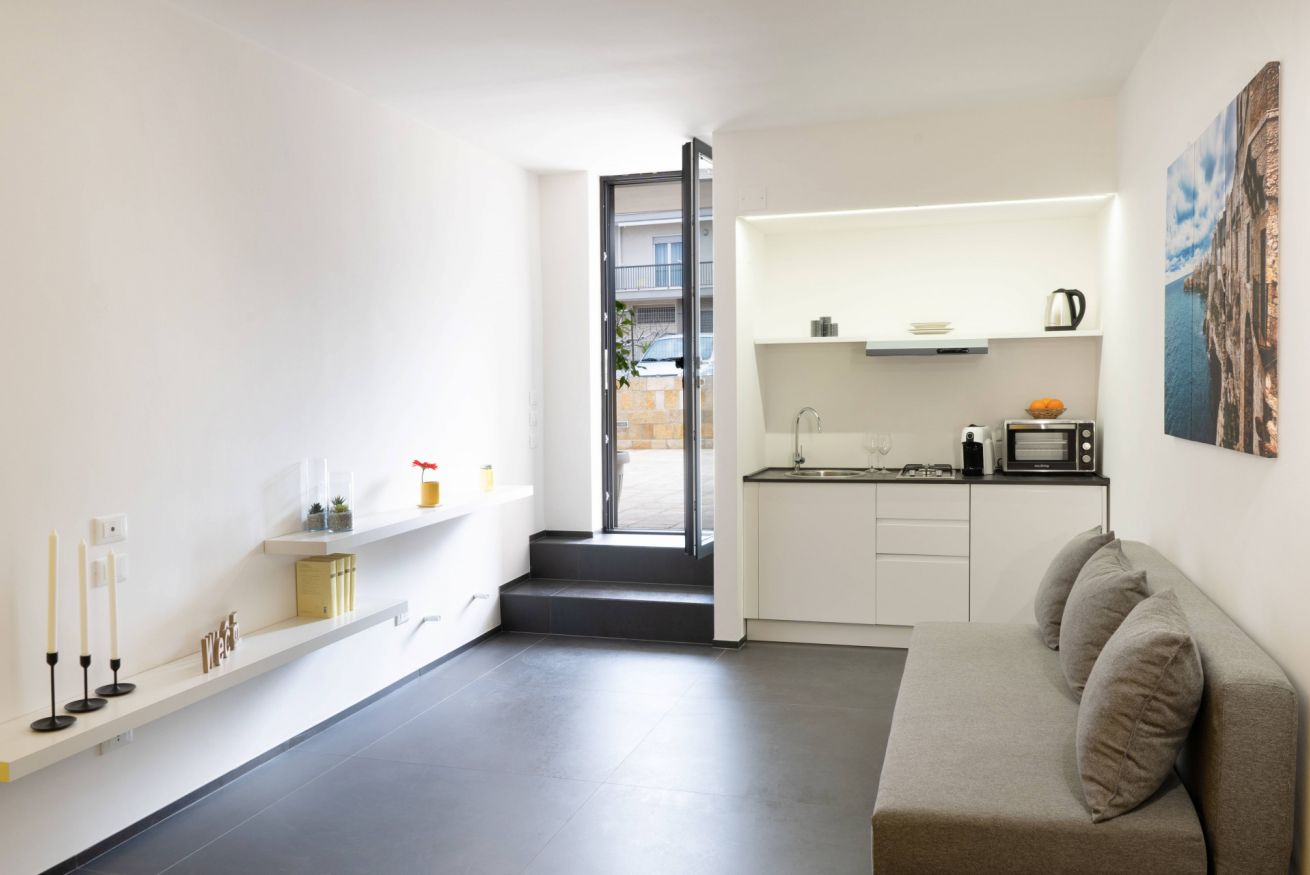 Dimore Museum – Apt Sole è un appartamento a piano terra recentemente ristrutturato ed arredato, ed è composto da un soggiorno-cucina con fornetto, piano cottura con 2 fornelli a gas, frigo e lavello, divano letto a una piazza e mezza e un tavolo con sedie. È presente anche un bagno con doccia, una camera matrimoniale e una piccola zona esterna privata con tavolino e sedie.