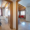 L’appartamento Delfini è composto da un soggiorno con tavolo da pranzo, divano letto e cucina dotata di piastre elettriche, frigorifero, forno elettrico, lavastoviglie, forno a microonde e lavello in acciaio, una camera da letto matrimoniale con cabina armadio e un bagno con box doccia e lavatrice. È inoltre presente una piccola zona esterna con tavolino e sedie. Il mare è solo a pochi passi dalla casa.